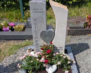 Ein Zeichen, das keine Worte braucht. Unser Himmels-Anker mit Herz-Zentrum verbindet die Beständigkeit des Steins mit der Unvergänglichkeit der Liebe. Ein liebevoller Akzent, der sich sanft in das Grün der Ruhestätte einfügt.