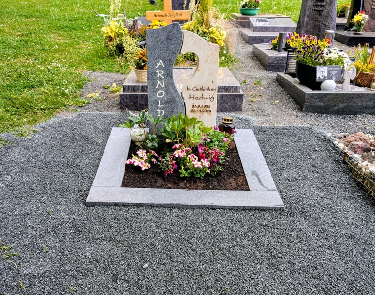 Für die Familie Arnold durften wir dieses Grabmal als Ort der Erinnerung und Beständigkeit schaffen. Ein würdevoller Rahmen für ein unvergessenes Leben.